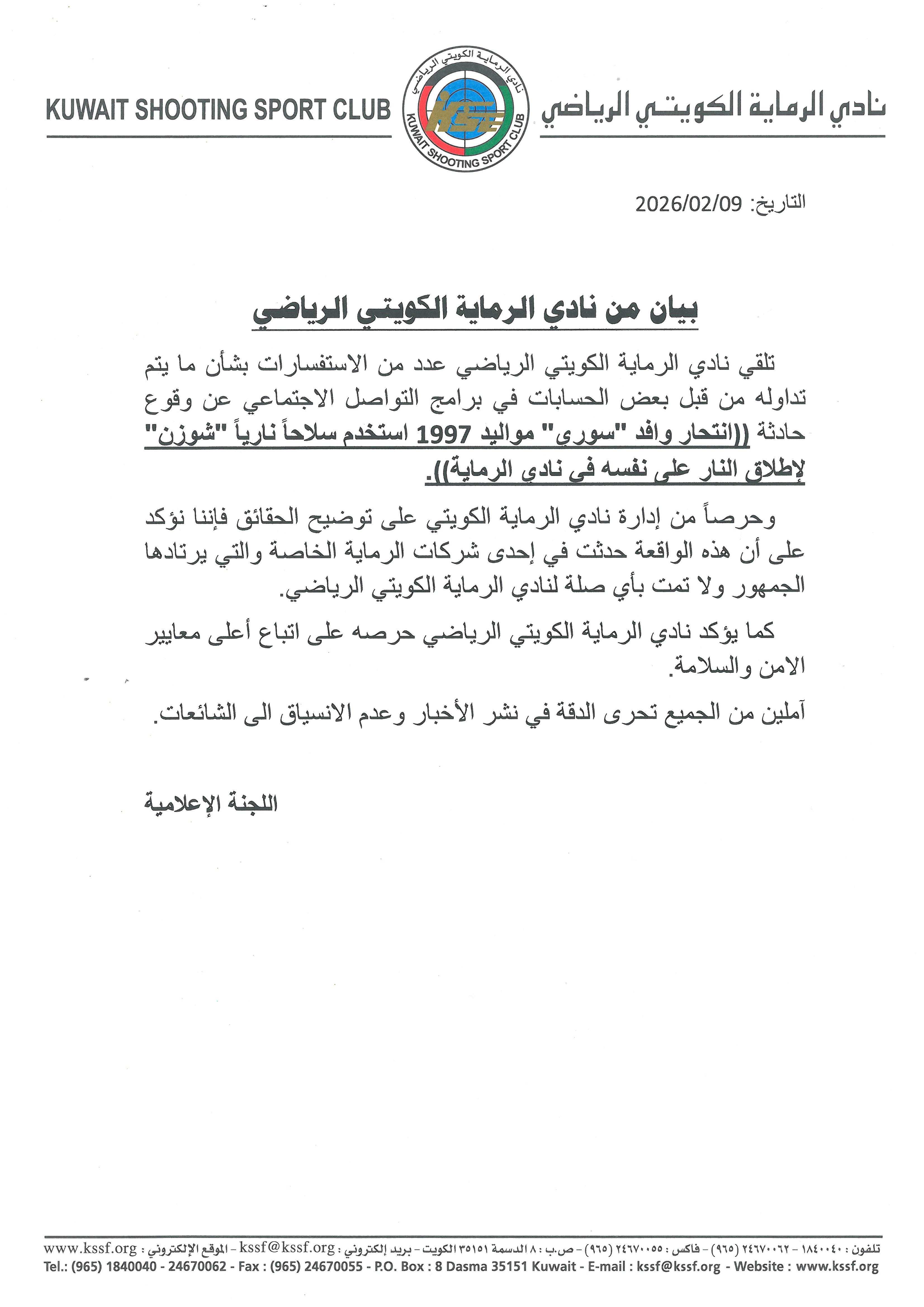 الكويتي والعربي للرماية دعيج العتيبي في تصريح إن اللجنة